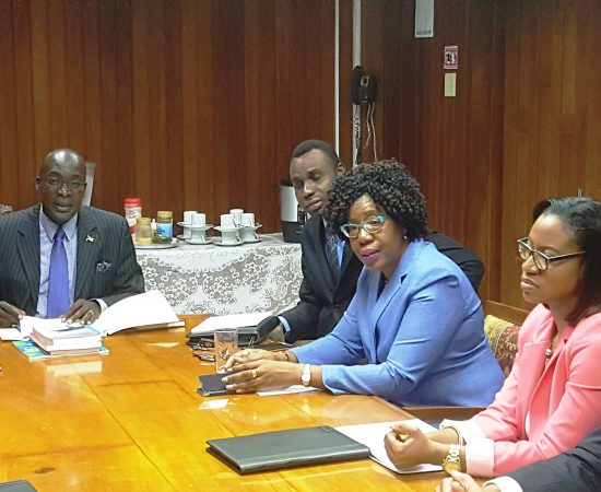 CAPTION: Education Minister, Senator Ruel Reid (centre) discusses the planned merger of the National Youth Service and Jamaica Foundation for Lifelong Learning into the Heart Trust / NTA, at the Ministry’s…