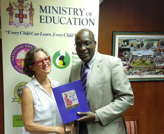 Film Producer Tammy Hart presents a DVD copy of the documentary Tell the Children the Truth to Minister of Education, Youth and Information Ruel Reid. The 47-minute production focuses on…